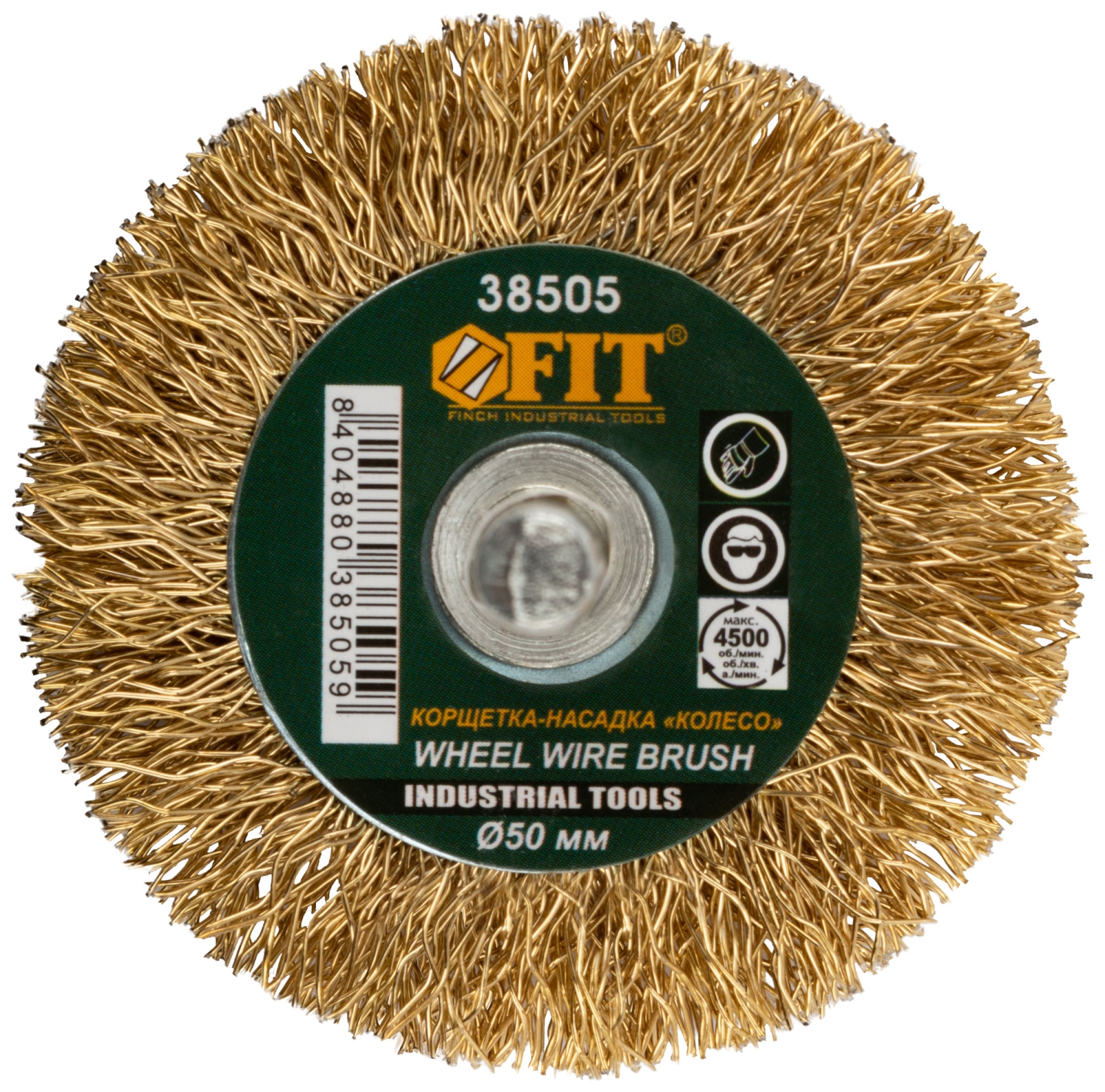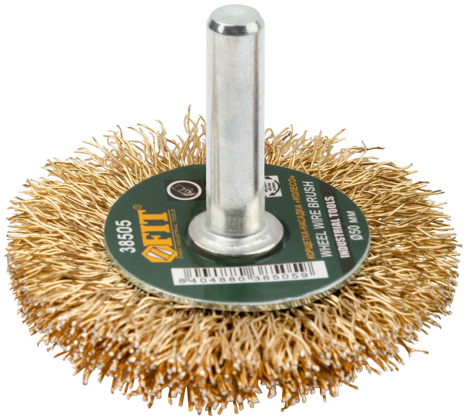 Корщетка-колесо, со штифтом, стальн.латунир.волнист.проволока 50 мм