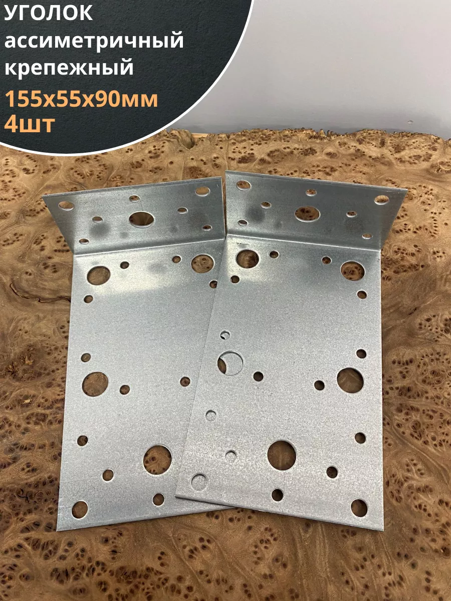 Крепежный ассиметричный уголок 155х55х90 ОЦ, 4 шт.