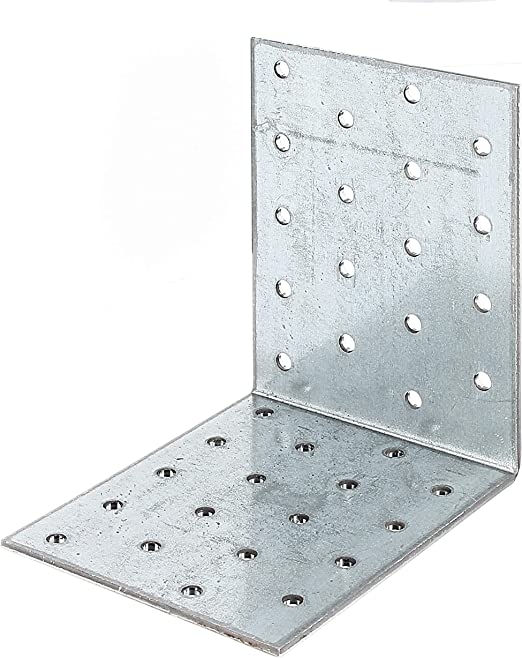 Равносторонний перфорированный уголок представляет собой стальную пластину, изогнутую под углом 90°, с отверстиями одинакового диаметра под многоточечный монтаж с помощью саморезов и гвоздей. Применяется в мебельном производстве, для соединения деревянных конструкций между собой и к основанию из дерева и металла, может использоваться для крепления балок, монтажа нагруженных несущих элементов из массивного бруса. Изготовлен из конструкционной стали с цинковым покрытием, обеспечивающим защиту от коррозии.