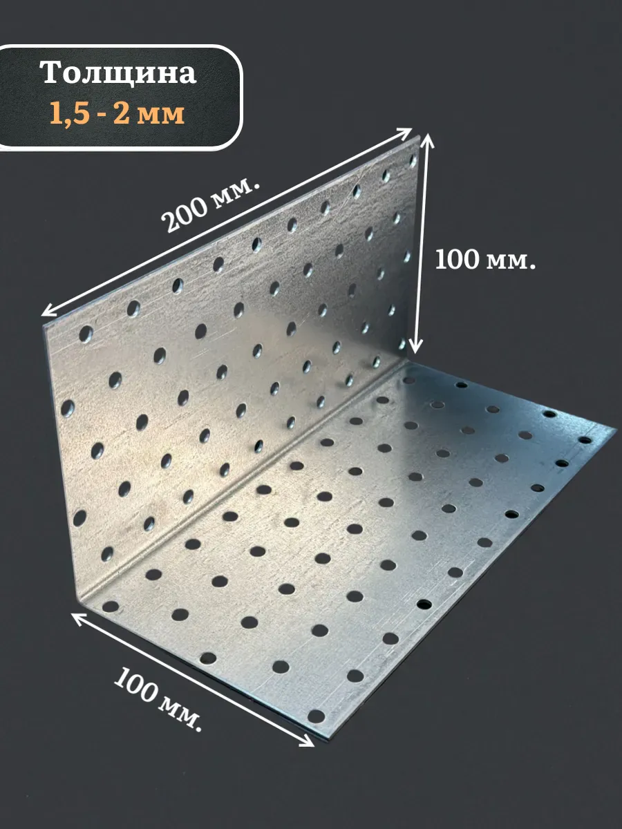 Крепежный равносторонний уголок 100х100х200 ОЦ, 4 шт.