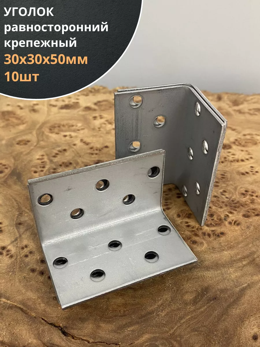 Крепежный равносторонний уголок 30х30х50 ОЦ, 10 шт.