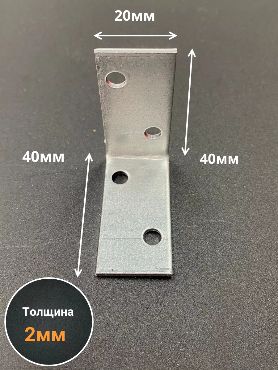 Крепежный равносторонний уголок 40х40х20 ОЦ, 10 шт.