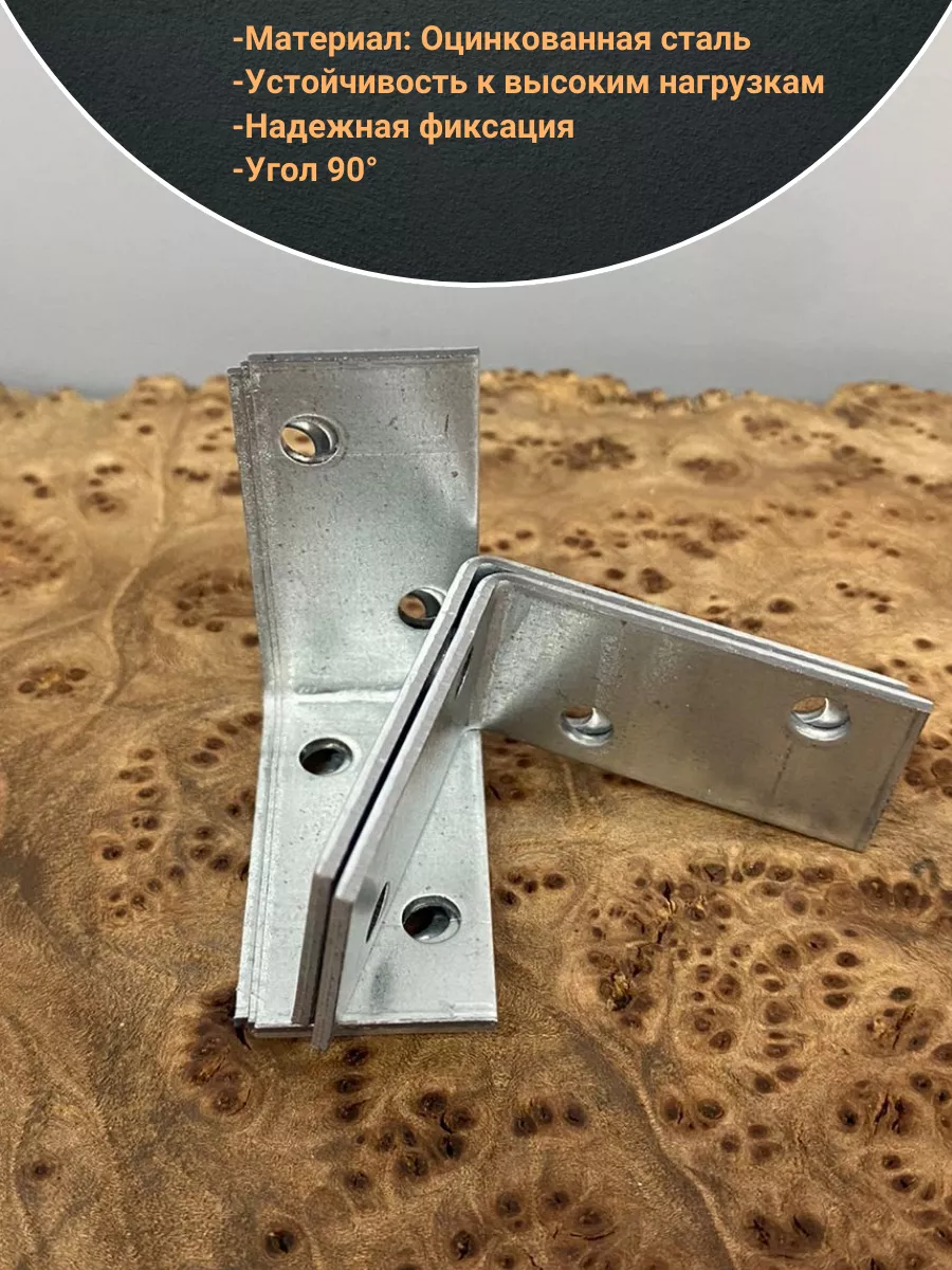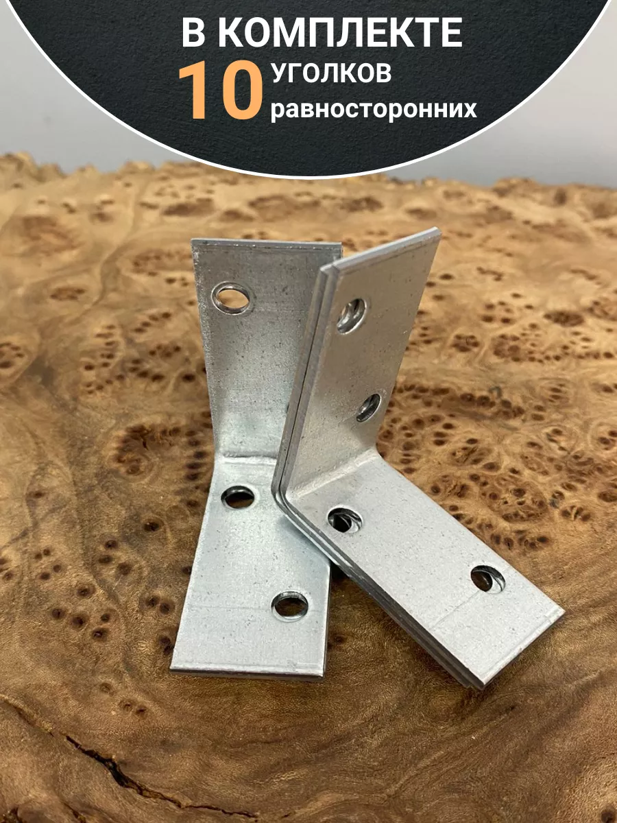 Равносторонний перфорированный уголок представляет собой стальную пластину, изогнутую под углом 90°, с отверстиями одинакового диаметра под многоточечный монтаж с помощью саморезов и гвоздей. Применяется в мебельном производстве, для соединения деревянных конструкций между собой и к основанию из дерева и металла, может использоваться для крепления балок, монтажа нагруженных несущих элементов из массивного бруса. Изготовлен из конструкционной стали с цинковым покрытием, обеспечивающим защиту от коррозии.