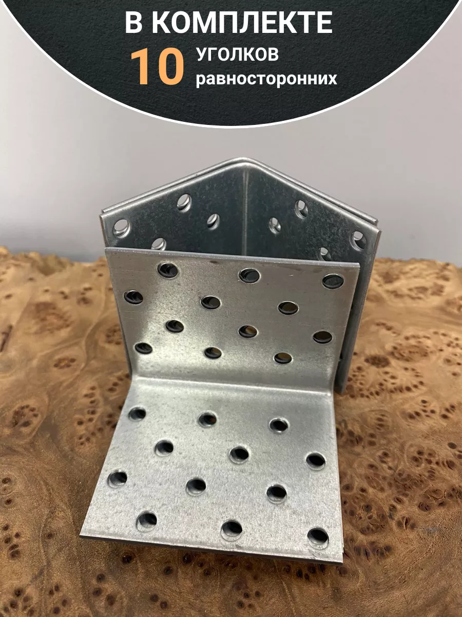 Крепежный равносторонний уголок 50х50х60 ОЦ, 10 шт.