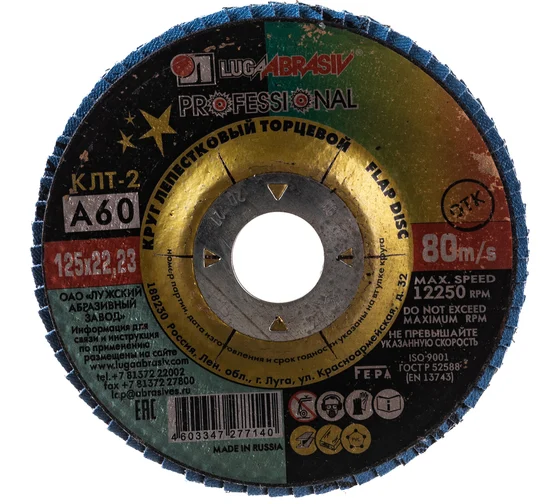 Круг лепестковый конический 125х22 мм A 60 КЛТ2 Луга