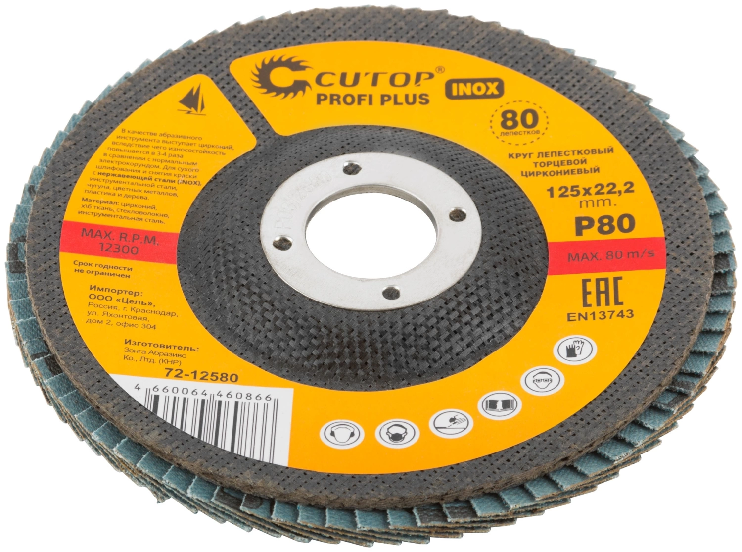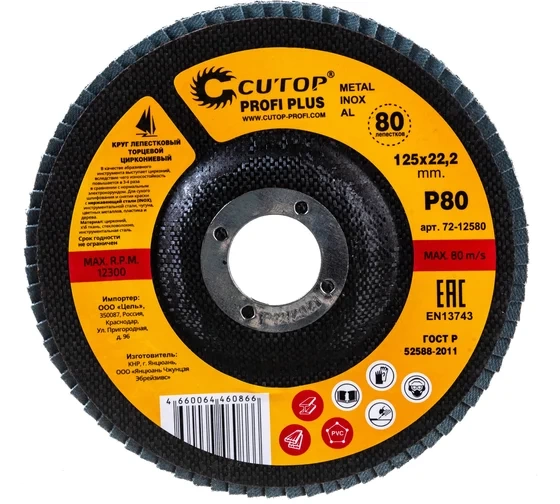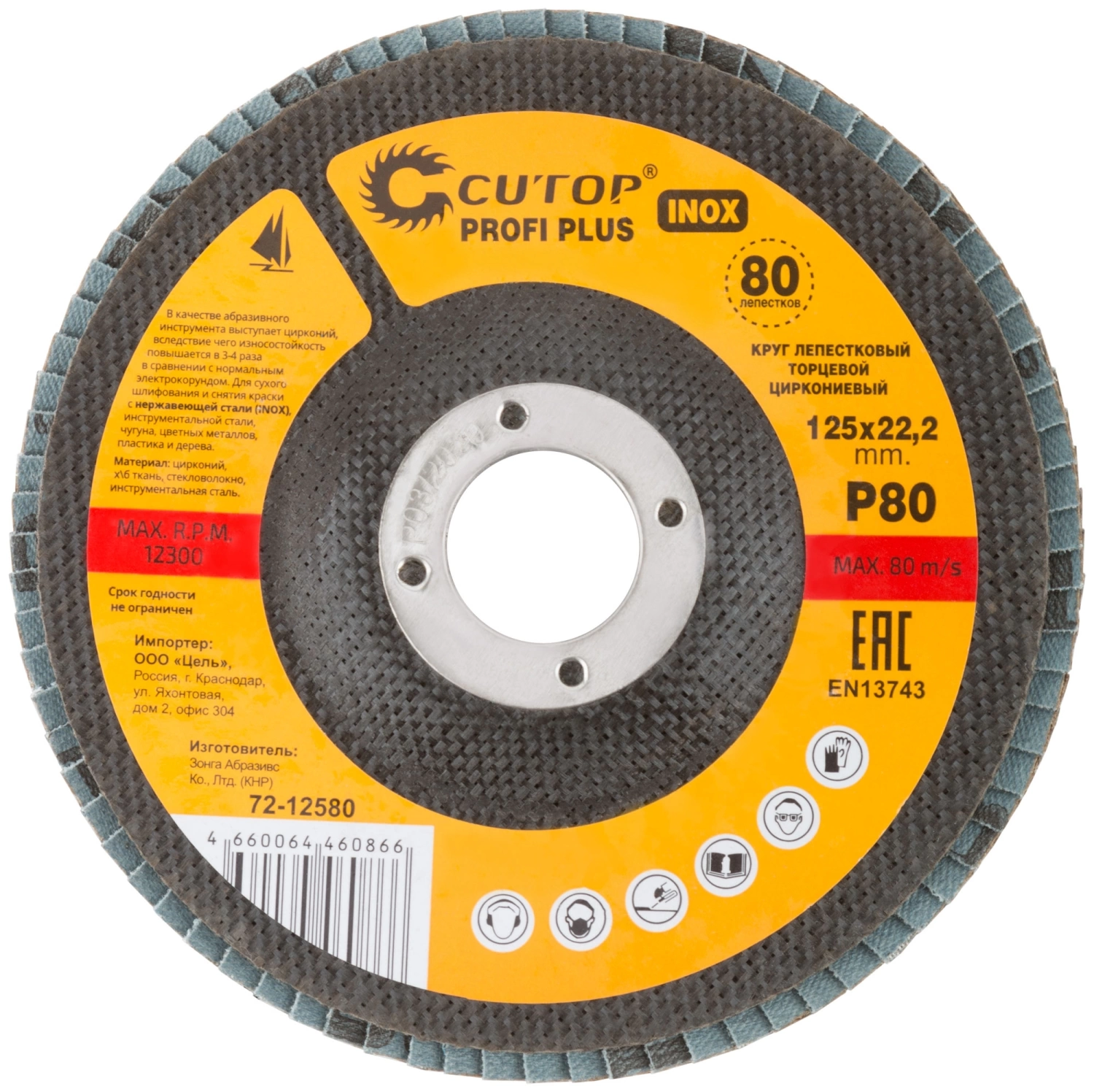 Круг лепестковый торцевой циркониевый Cutop Profi Plus (80 лепестков) 125х22,2 мм Р80 (CUTOP)