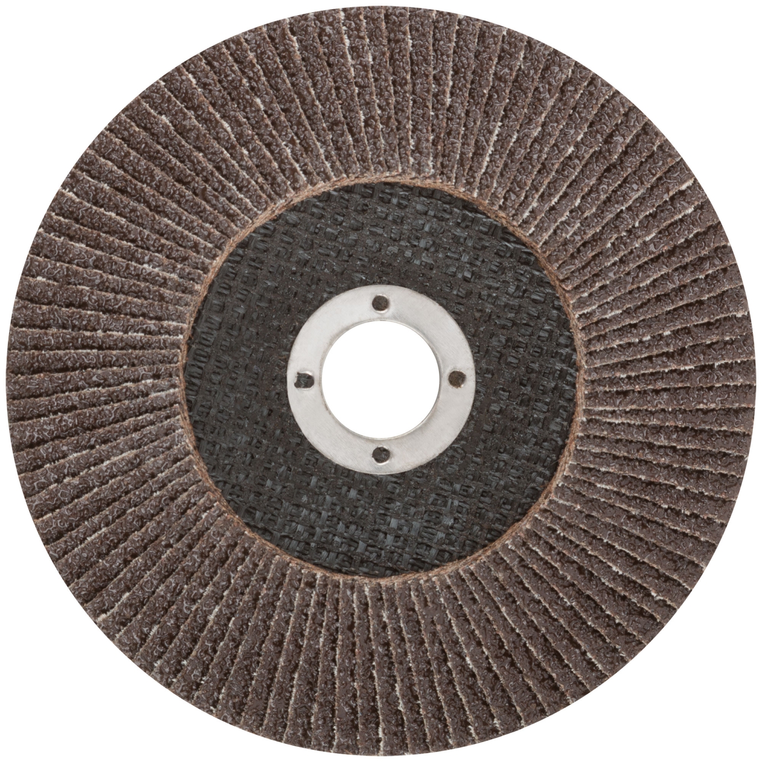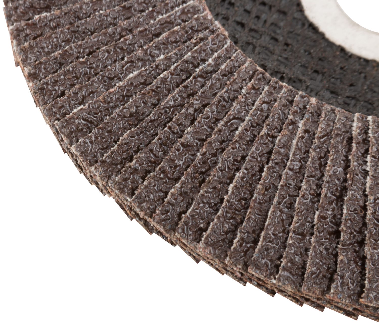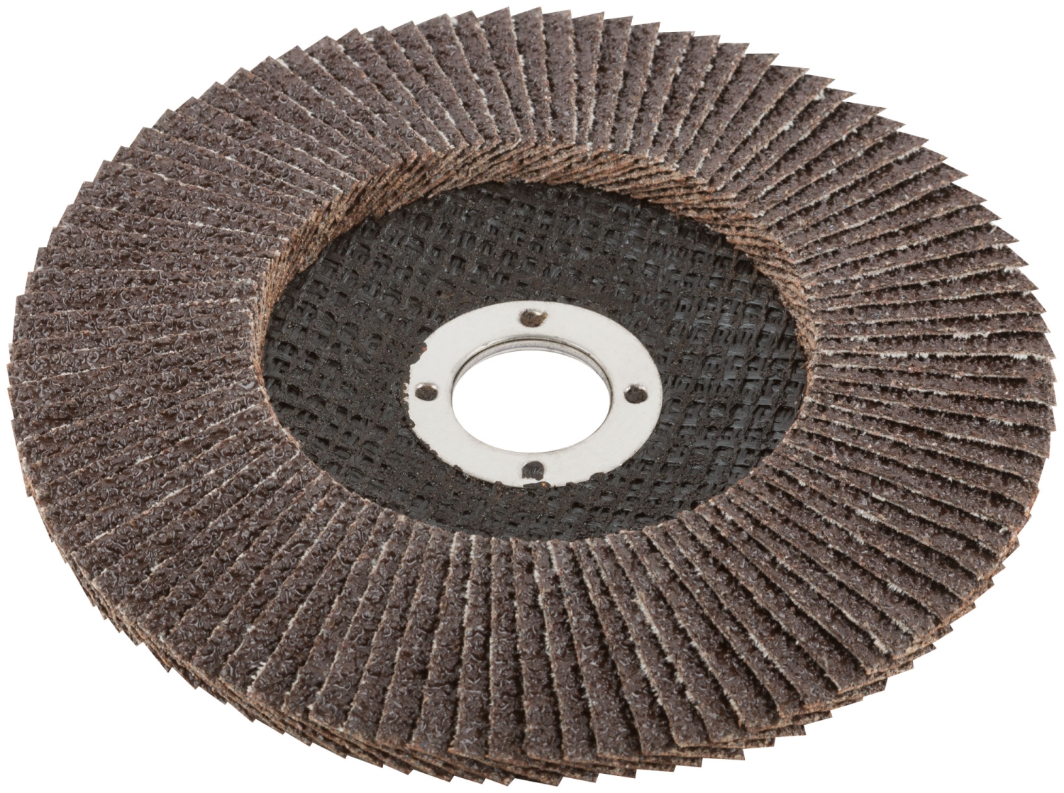 При изготовлении используется высококачественный гибкий абразивный материал состоящий из тканевой основы на которую нанесен слой кальцинированного оксида алюминия. Данный абразив имеет более твердые частицы,чем обычный оксид алюминия - Корунд, что позволяет увеличить скорость обрабатываемой поверхности до пяти раз. Наполняемость диска составляет до 96 лепестков с углом наклона 10 градусов, что позволяет увеличить КПД круга и его стойкость к износу в несколько раз. Предназначен для обработки металла и нержавеющей стали.<br/>Для углошлифовальных машин. Посадочный диаметр 22,2 мм.