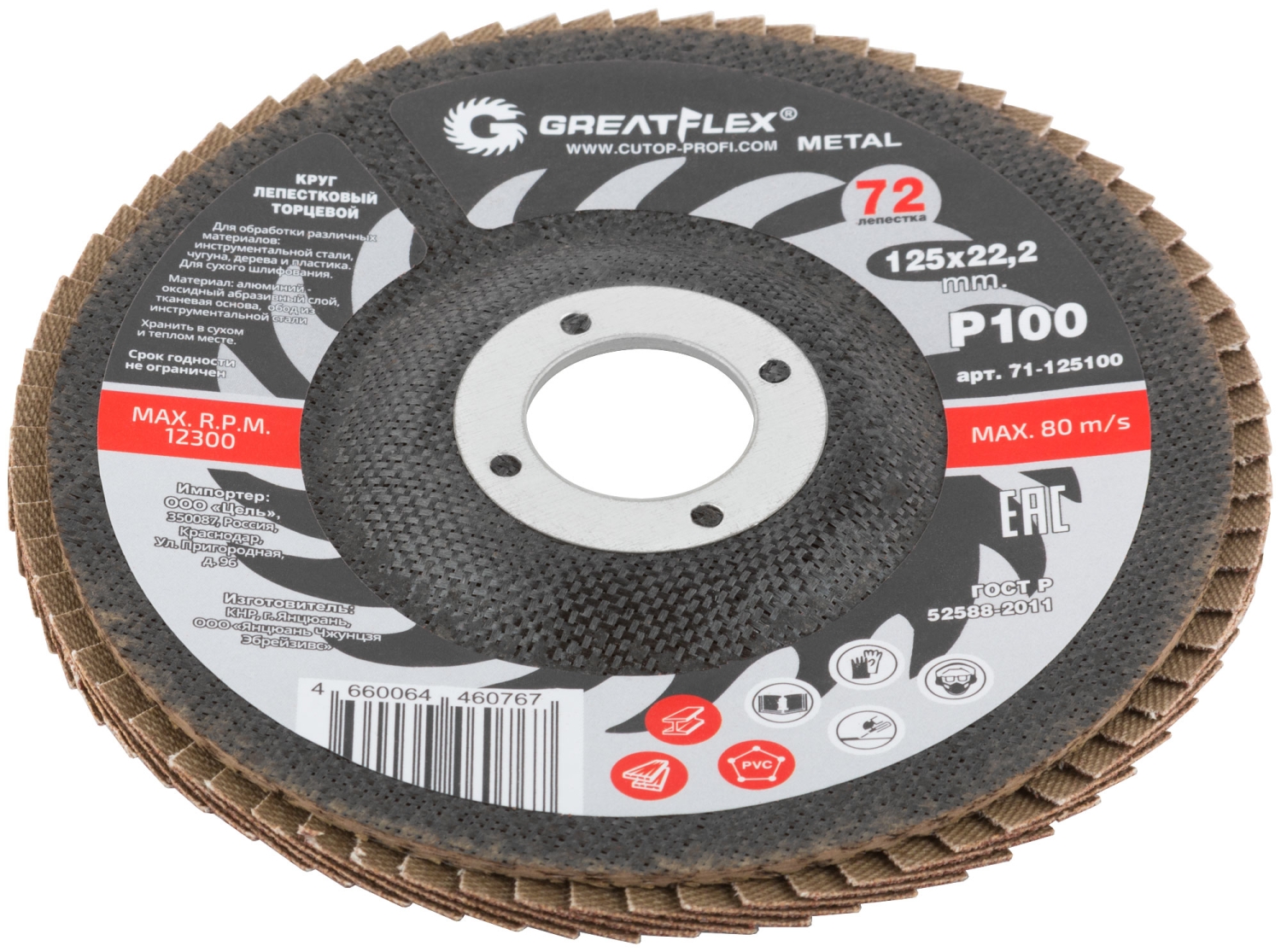 Круг лепестковый торцевой GREATFLEX (72 лепестка) 125х22,2 мм Р100