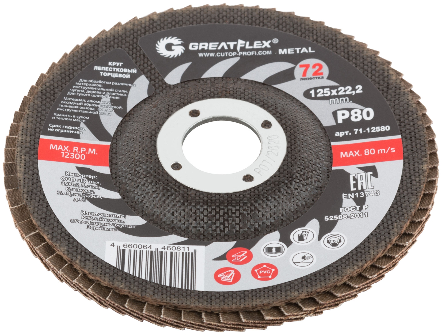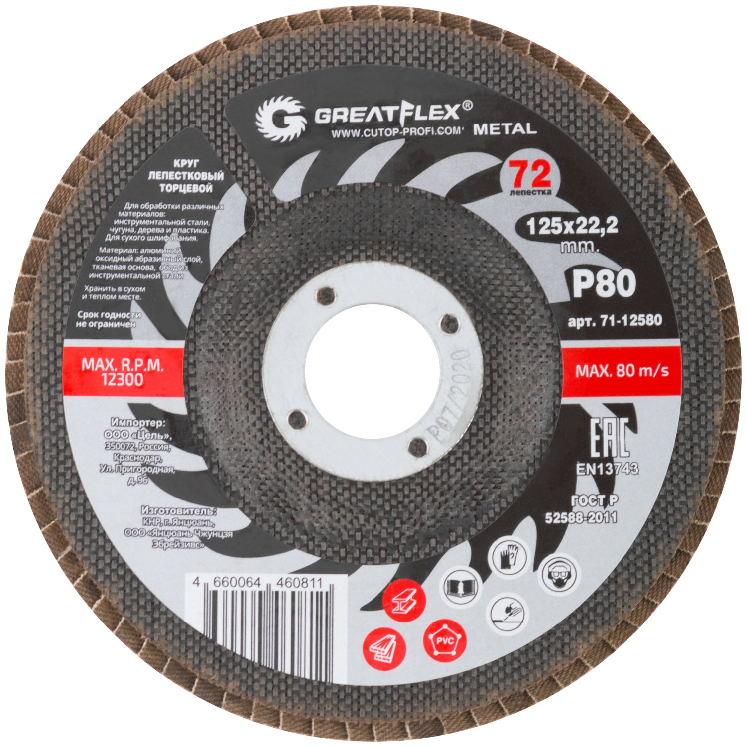 Круг лепестковый торцевой GREATFLEX (72 лепестка) 125х22,2 мм Р80