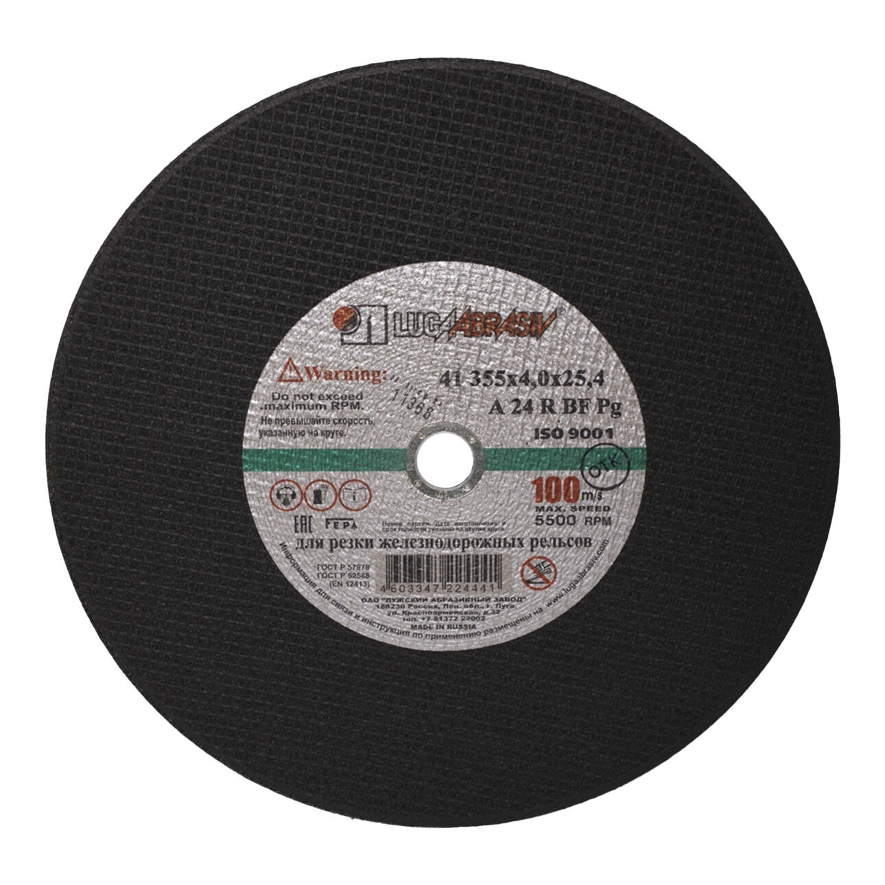 Круг отрезной мет 2 ручн. д/рельс 355х4,0х25,4 мм A 24 Q BF 100 Луга