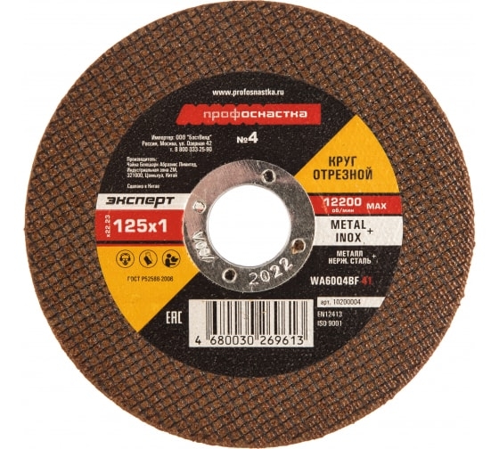 Круг отрезной мет+нерж №04 125х1х22 мм Профоснастка Эксперт тип 41