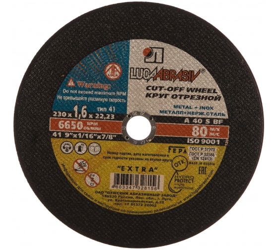 Круг отрезной мет+нерж 230х1,6х22 мм A 40 S BF 80 Луга D11002302216000 1 шт.