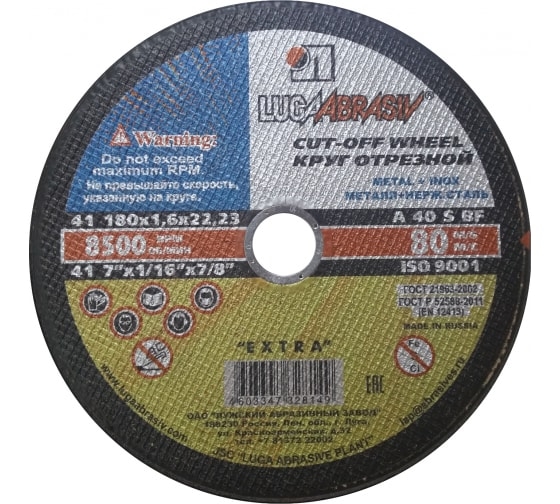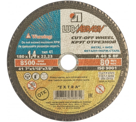 Круг отрезной мет+нерж 180х1,4х22 мм A 40 S BF 80 Луга D11001802214000 1 шт.