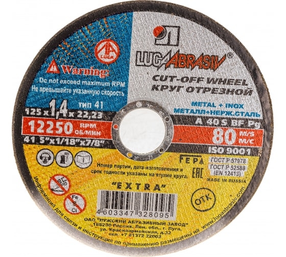 Круг отрезной мет+нерж 125х1,4х22 мм A 40 S BF 80 Луга D11001252214000 1 шт.