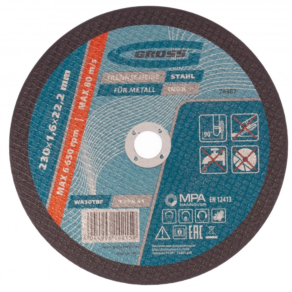 | Круг отрезной по металлу 150х1,6х22,2 мм WA46TBF Gross | 74376 | 1 шт. |