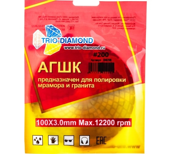 Круг алмазный гибкий шлифовальный Черепашка 100 № 200 Trio-Diamond 340200 предназначен для ручных шлифовальных машин. Применяется для обработки бетонных конструкций, камня, изделий из мрамора и гранита. Круг изготовлен на гибкой основе, имеет алмазное напыление и крепится при помощи липучки.