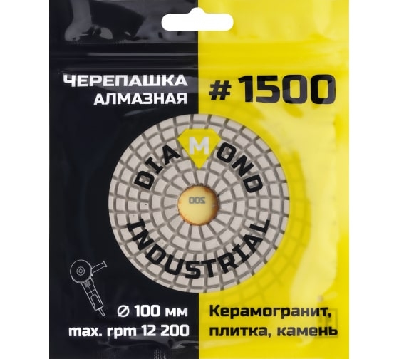 Круг алмазный гибкий шлифовальный Черепашка 100 мм, №1500 Diamond Industrial DIDCHSH1500 предназначен для шлифовки, заусовки и полировки керамогранита, гранита, плитки, мрамора и других изделий из натурального и искусственного камня.