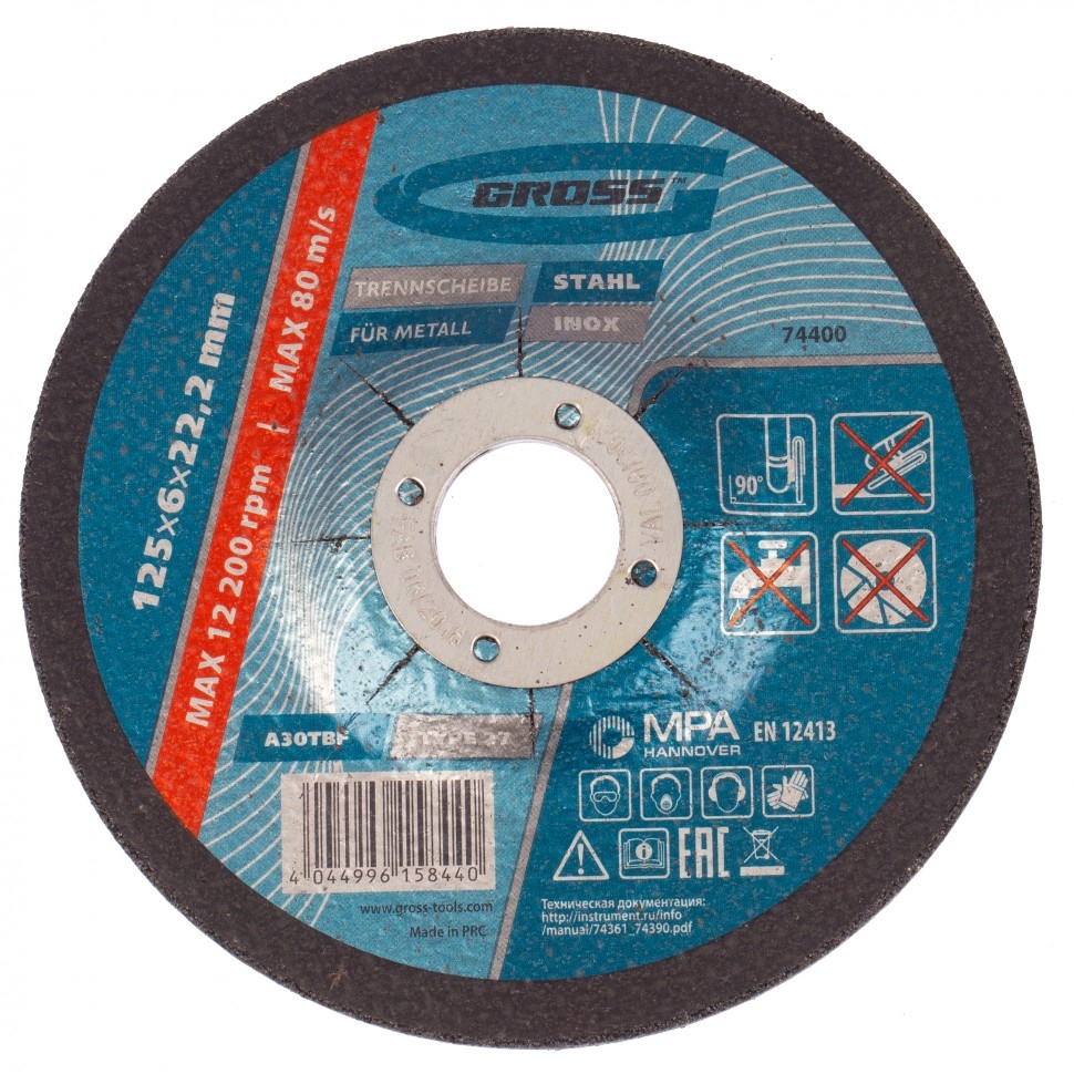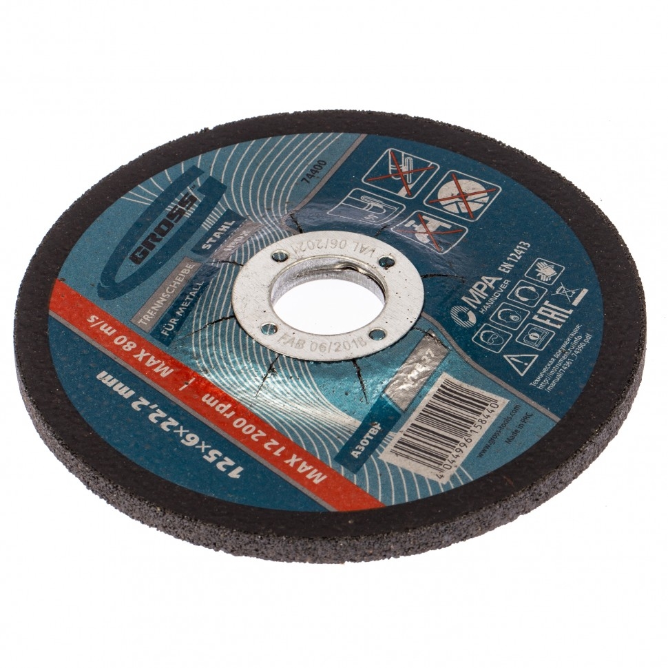 Круг шлифовальный по металлу Gross WA24TBF 74400, 125 x 6,0 x 22,2 мм, применяется для интенсивной сухой обработки нержавеющих, углеродистых сталей и металлических поверхностей. Устанавливается на фланец УШМ с посадочным диаметром 22,2 мм. Круг пригодится для профессионального применения при необходимости зачистки сварных швов, снятия заусенцев, окалины и ржавчины. В качестве абразива используется белый электрокорунд с добавками, обеспечивающий очень высокий ресурс круга. Твердая бакелитовая связка с армированием надежно фиксирует абразив на основе круга. Особый состав круга не допускает его перегрева, а также способствует снижению образования искр и пыли во время шлифования. 3-слойная усиленная стеклосетка обеспечивает высокую стойкость круга на разрыв, повышая безопасность эксплуатации. Круг прошел многоступенчатую проверку, что гарантирует его высокое качество.