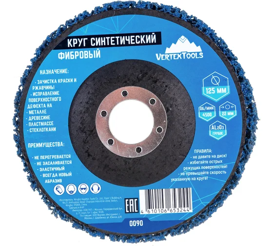 Круг зачистной полимерный коралловый синий vertextools 0090 предназначен для снятия ржавчины и краски с металлических и деревянных поверхностей. Идеально подходит для тонколистового металла, криволинейных поверхностей.