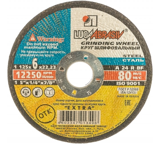 Круг зачистной Луга D11201252260000 предназначен для ручных шлифовальных машин. Применяется для силового шлифования деталей и конструкций из различных марок сталей, сварных швов.