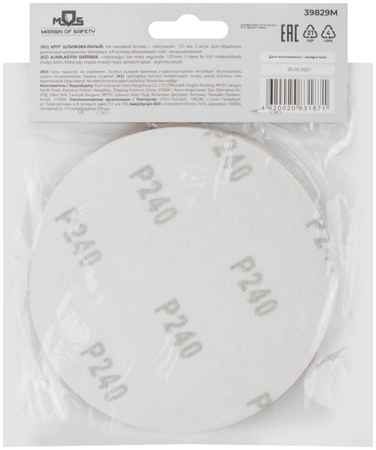 На тканевой основе с "липучкой". Диаметр 125мм, набор 5 шт. Для обработки различных метериалов. Материал: х/б основа, образивный слой-оксид алюминия
