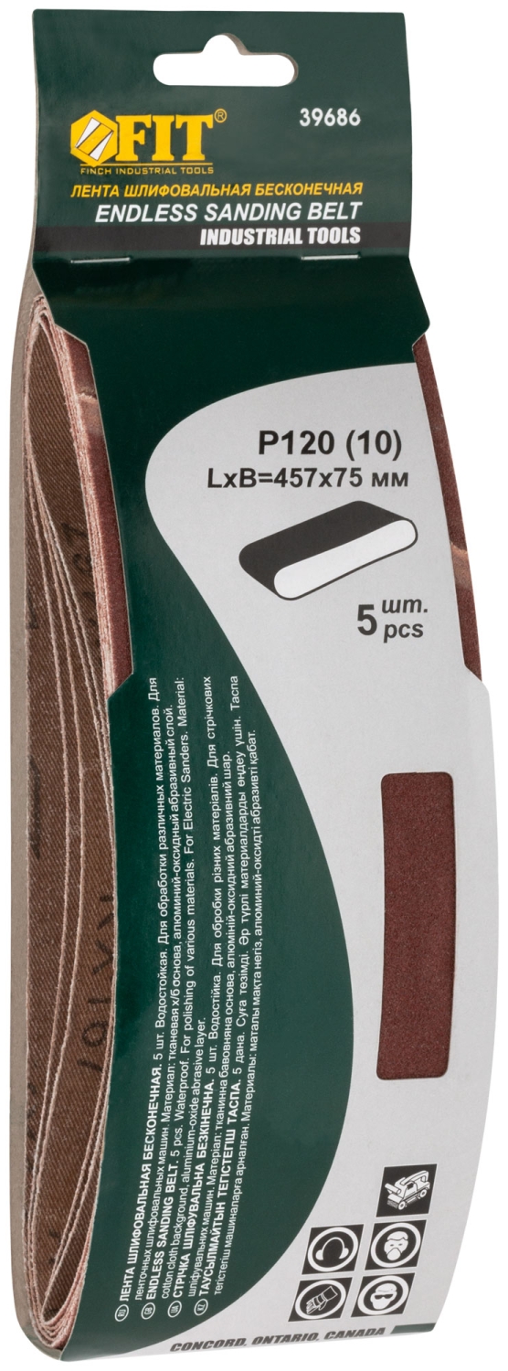 Ленты шлифовальные бесконечные, водостойкие, тканевая основа, 75 х 457 мм, 5 шт. Р 120
