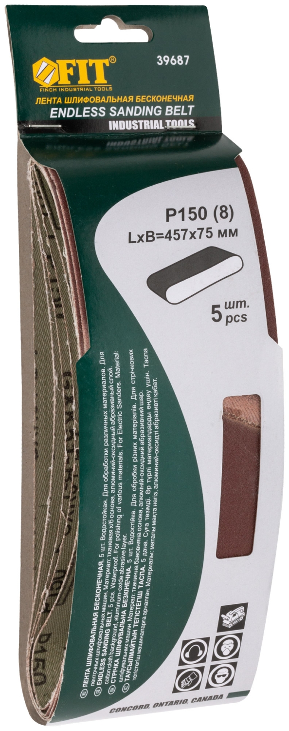 | Ленты шлифовальные бесконечные, водостойкие, тканевая основа, 75 х 457 мм, 5 шт. Р 150 | 39687 | 1 шт. |
