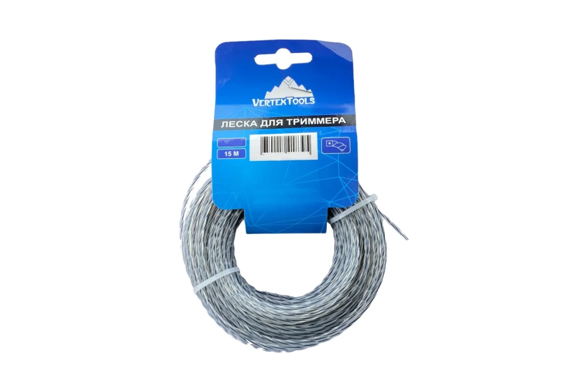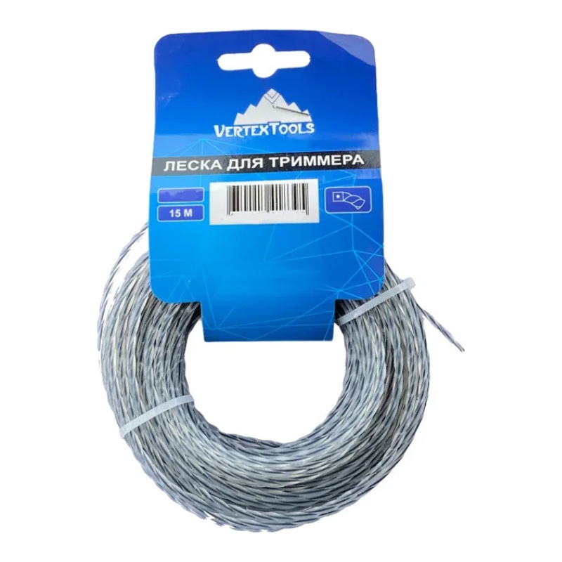 Леска для триммера витой квадрат с сердечником 2,4 мм V 15 м VERTEX