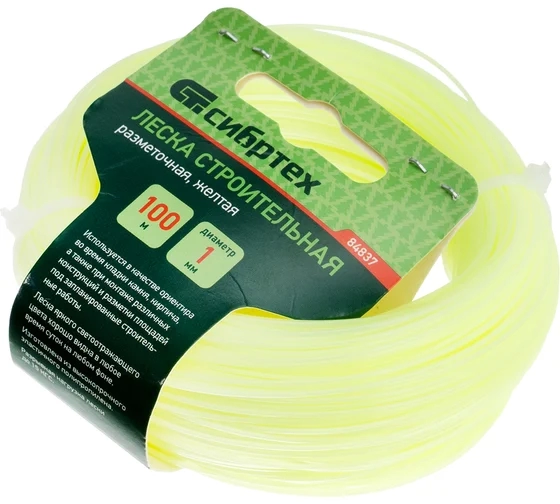 Леска строительная D 1 мм длина 100 м желтая Сибртех