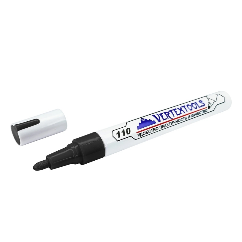 Маркер краска строительный, черный используется для нанесения надписей на стекло, металл, бетон, пластик, дерево, текстиль, резину, включая влажные, шершавые, масляные, пористые поверхности. Не выгорает на солнце. Краска устойчива к механическим воздействиям. Толщина линии - 4 мм. Длина маркера 144 мм.
