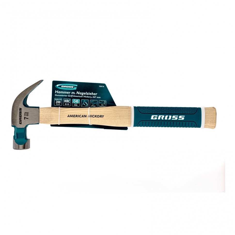 Молоток-гвоздодер Gross American Hickory 10414 длиной 305 мм, с головкой весом 200 г, с магнитом и обрезиненной рукояткой, предназначен для забивания крепежных элементов и извлечения неудачно вбитых гвоздей. Носок, загнутый под углом 45 градусов, позволяет легко вытянуть гвоздь. Благодаря двум прорезям - мини и стандартной - молоток подходит для работы с крепежами разных размеров. Инструмент будет полезен во время отделочных работ, при сборке мебели, пригодится также дома, на даче или в гараже. Головка изготовлена из среднеуглеродистой стали 45 марки, поэтому отличается высокой прочностью и долговечностью.