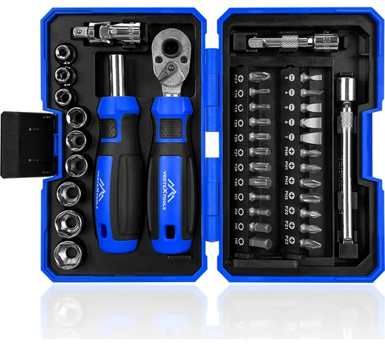 Набор бит 38 предм. держатель,трещотка,удлинитель,кардан,головки VERTEXTOOLS