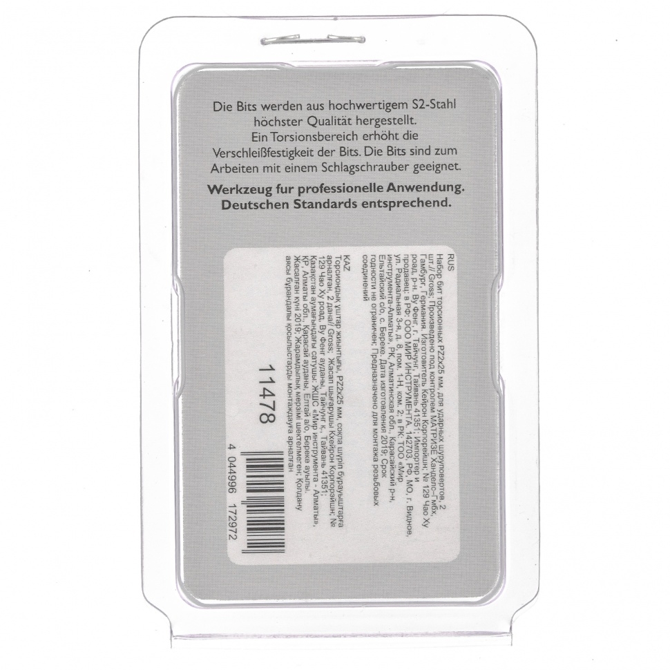 Набор бит торсионных PZ2х25 мм, для ударн.шуроповертов 2шт Gross