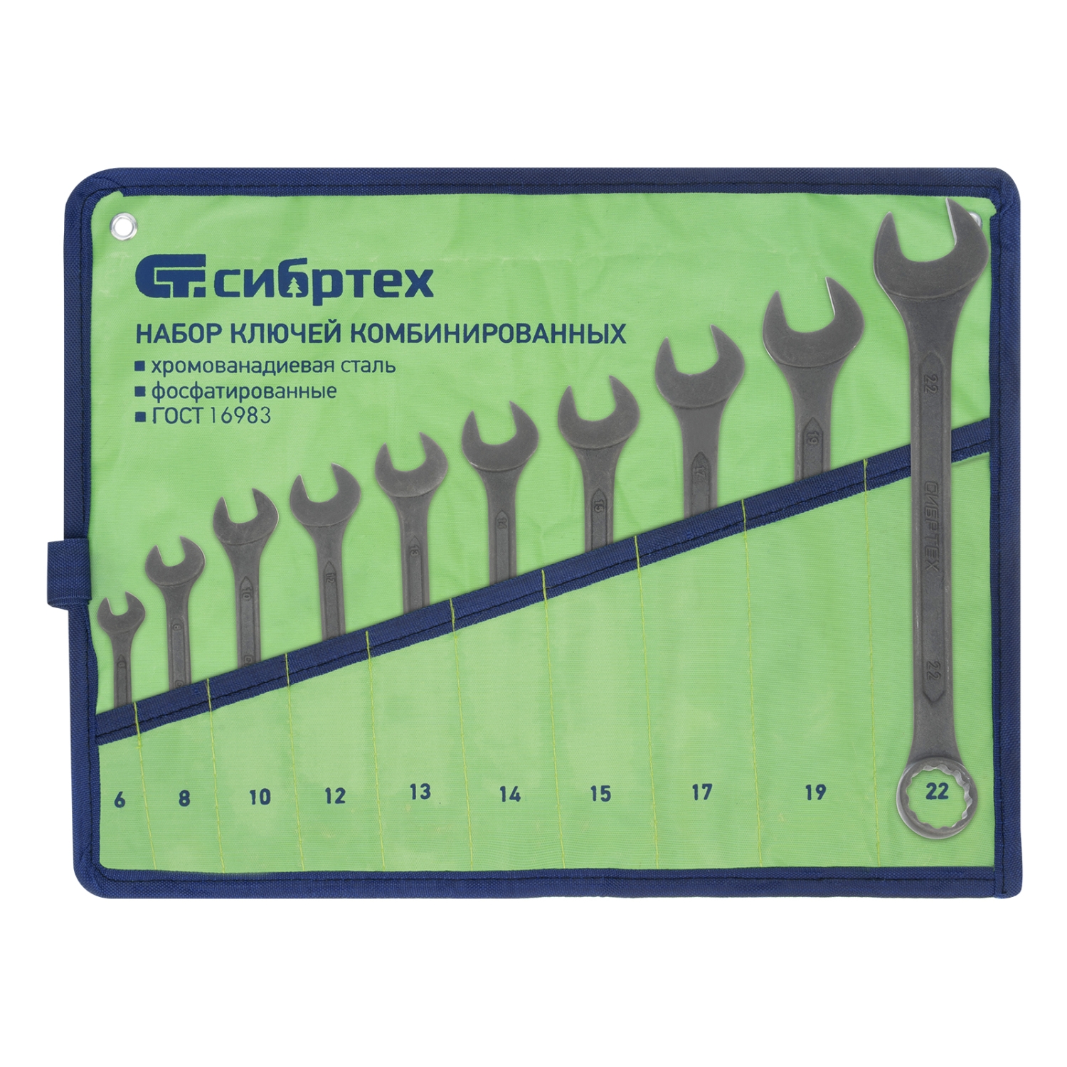 Набор ключей комбинированных 6-22 мм 10 шт CrV фосфатированные ГОСТ16983 Сибртех
