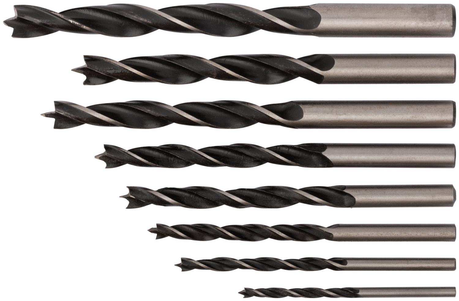 Набор сверл по дереву, ПВХ конверт, 8 шт.(3-4-5-6-7-8-9-10 мм). Цилиндрический хвостовик. Материал: инструментальная сталь.