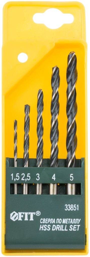 Набор сверл по металлу HSS чернен. 5шт. (1,5-2,5-3-4-5 мм)
