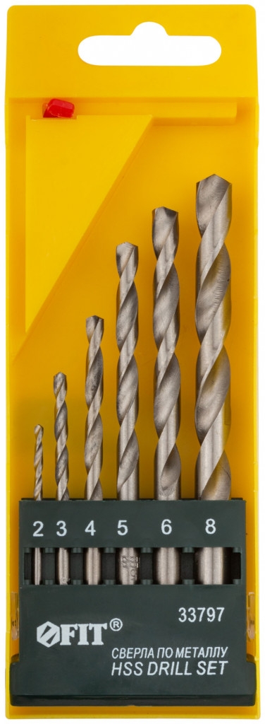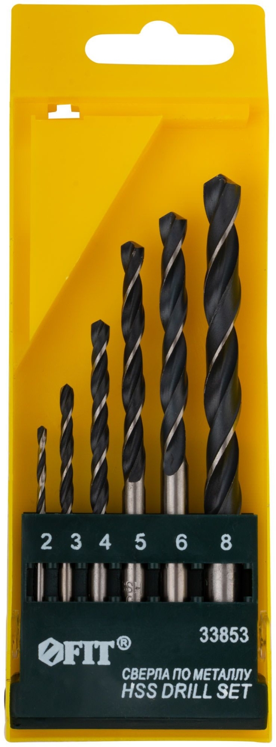 Набор сверл по металлу hss полированных, 6 шт. (2-3-4-5-6-8 мм). DIN 338. Цилиндрический хвостовик. Полированные. Угол заточки 118°. Класс точности А1. Материал: быстрорежущая (HSS) сталь. Упаковка: пластиковый бокс