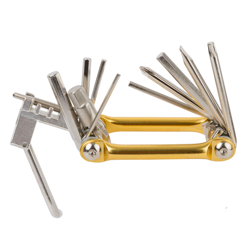Велосипедный набор для мелкого ремонта из стали CrV с 11 функциями предназначен для обслуживания и ремонта велосипедов. Он может включать такие инструменты, как шестигранные ключи, отвёртки, выжимку для цепи, ключ для спиц и другие полезные приспособления. Этот набор будет полезен для велосипедистов, которые хотят иметь возможность быстро и эффективно проводить мелкий ремонт и обслуживание своего велосипеда в дороге или дома.
