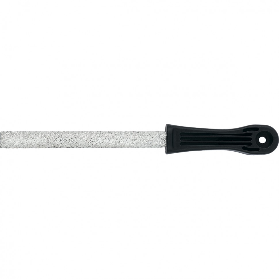 Круглый напильник Matrix 16504 с карбидным напылением, с рабочей частью длиной 150 мм и диаметром 4 мм, предназначен для зачистки и доводки изделий из материалов повышенной твердости: металла или керамики. Оптимален для опиливания округлых выемок и отверстий. Будет полезен в слесарной мастерской, во время ремонта, а также пригодится в быту.