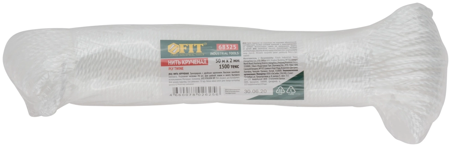 Нить крученая 2мм х50 м, 1500 текс, р/н=70 кгс, белая