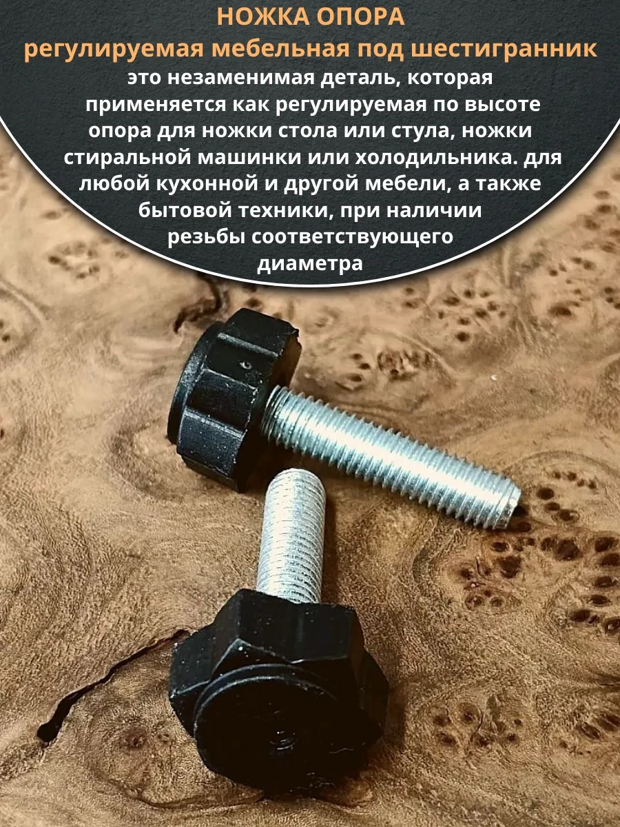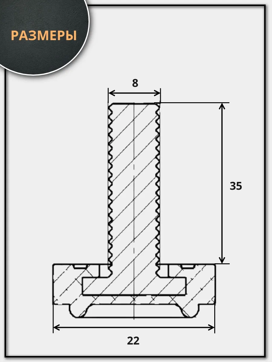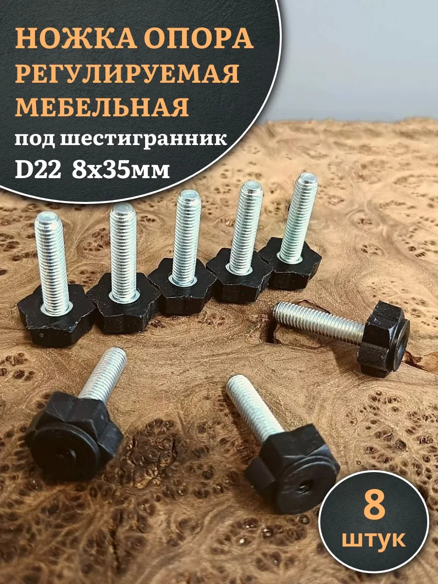 Ножка опора D22 М8х35 регулируемая мебельная под шестигранник