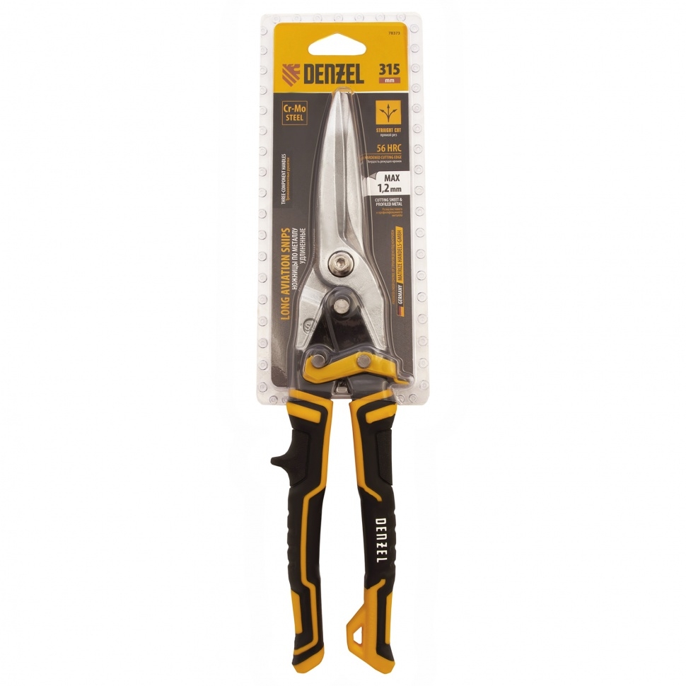 Ножницы по металлу, 315 мм, прямой проходной рез., сталь-CrMo, трехкомп.рук Denzel