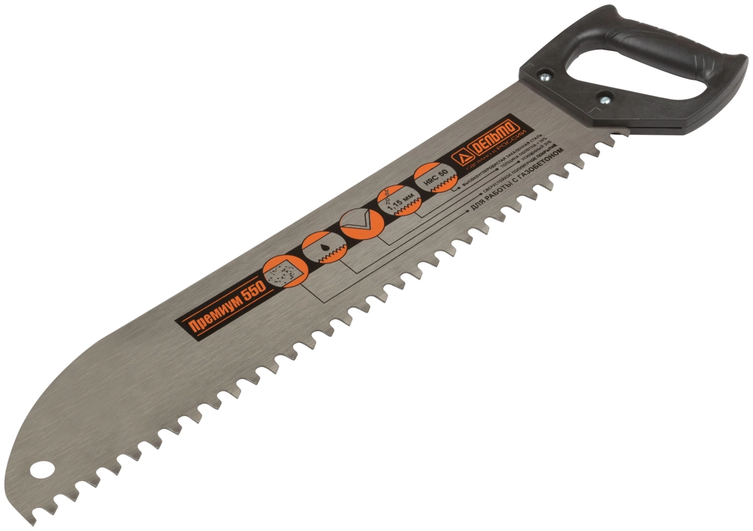 Ножовка по пенобетону Дельта (Премиум), закругленное полотно, усиленный зуб (шаг 16мм), 550мм(10110)