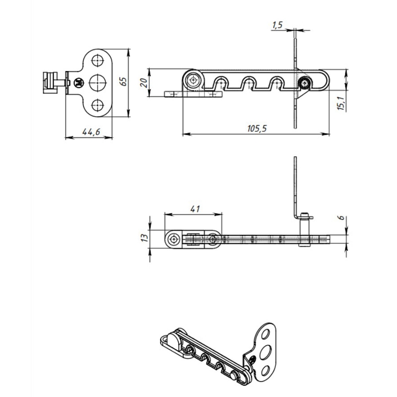 Ограничитель открывания окна 105 мм белый пластмассовый