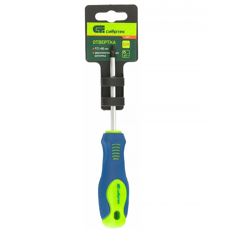 Отвертка PZ1x80 мм, CrV, двухкомпонентная рукоятка Сибртех