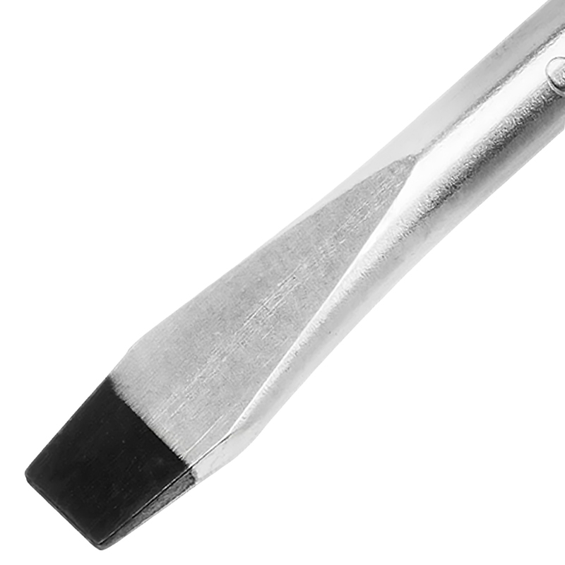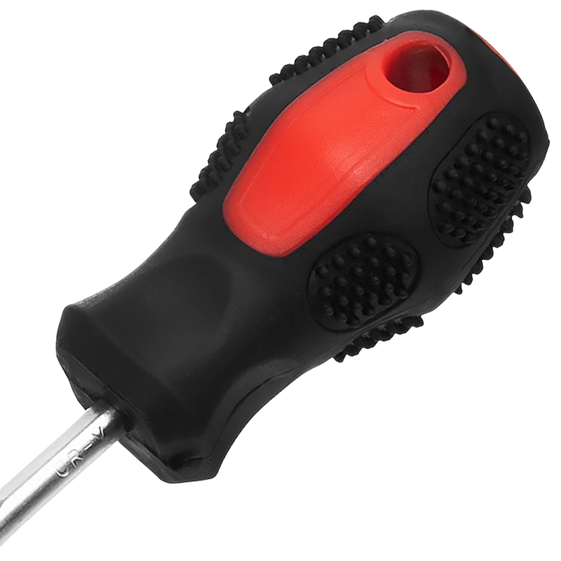 Отвёртка Matrix Anti-Slip 12202 с рабочим профилем SL5,0 × 38 мм изготовлена из высокопрочной хром-ванадиевой стали, обеспечивая прочность и износостойкость инструмента. Фосфатированное покрытие наконечника улучшает сцепление с винтами типа Slotted («минус»), позволяя избежать повреждений шлицев и гарантируя точное попадание в отверстие крепления. Намагниченный кончик упрощает процесс монтажа: винт легко удерживается на жале, освобождая вторую руку для фиксации детали. Двухкомпонентная эргономичная ручка с углублениями под пальцы и рифленым покрытием предотвращает соскальзывание даже при интенсивной работе. Благодаря компактному размеру стержня длиной всего 38 мм инструмент идеально подходит для труднодоступных мест, востребован специалистами автосервисов, строителями, сборщиками мебели и частными мастерами.