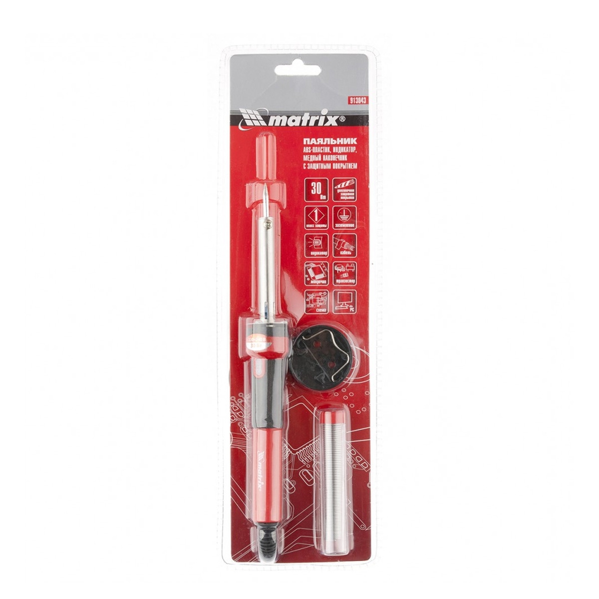 Паяльник, пластик.ABS класс защиты 1, индикатор, мед.наконечник с долговеч.защит.покр., 30W Matrix