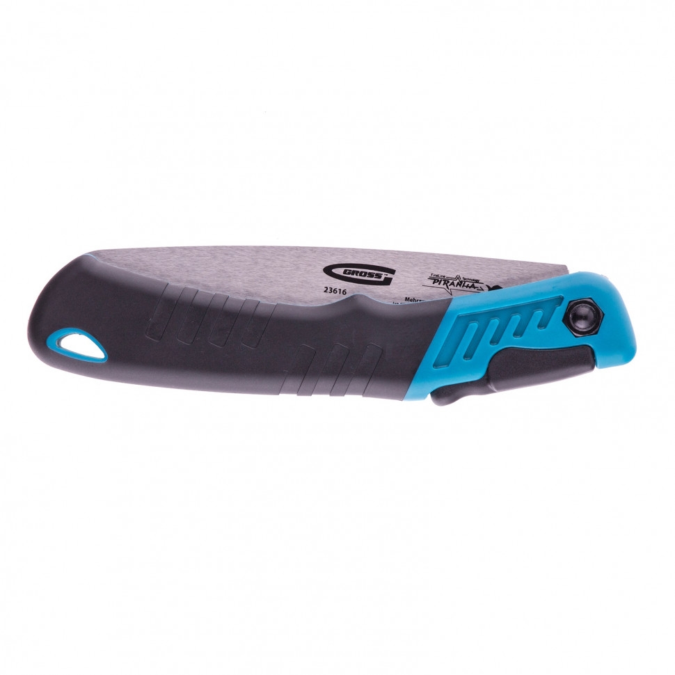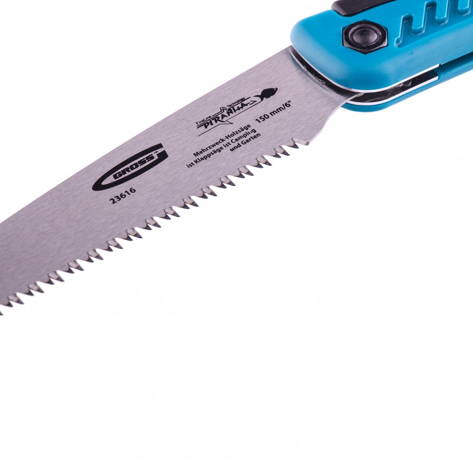 Складная пила по дереву Gross PIRANHA 23616 для кемпинга и сада с 2-компонентной рукояткой, полотном длиной 150 мм, подкаленными зубьями с шагом 9-10 TPI и 3D-заточкой, пригодится на пикнике, в походе или на дачном участке. Предназначена для продольной и поперечной распиловки древесины, подходит также для работ с фанерой, ДВП и ПВХ. Характеристики режущей кромки соответствуют требованиям всех международных стандартов: зубья с трехгранной заточкой и шагом 9-10 TPI обеспечивают быстрый и ровный распил. Благодаря складной конструкции пилу очень удобно хранить и брать с собой в поездки. Долговечность — полотно изготовлено из японской конструкционной стали SK-5 твердостью 48-52 HRC.