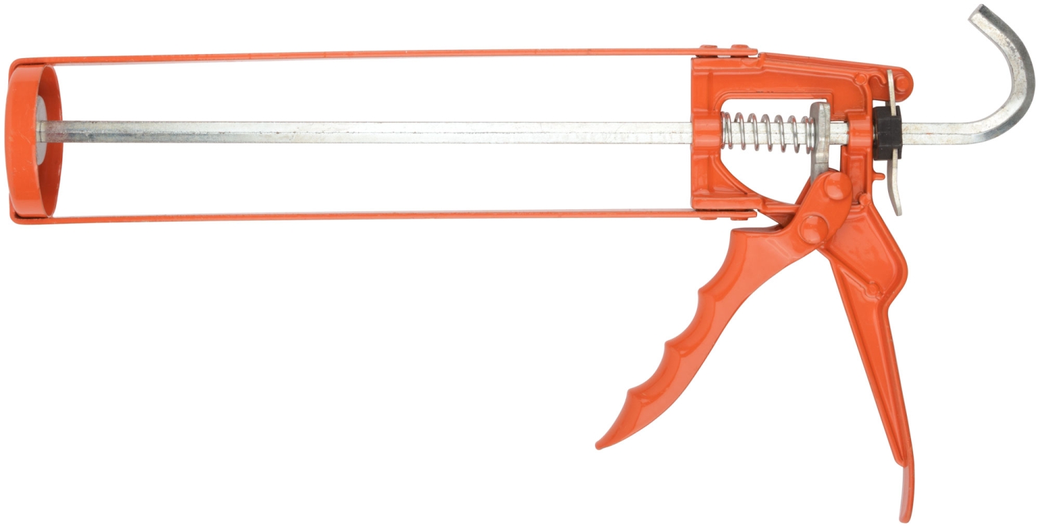 Скелетный, усиленный. Для выдавливания герметика из стандартной емкости 310 мл. Противокапельная система. Материал: инструментальная сталь, алюминий.