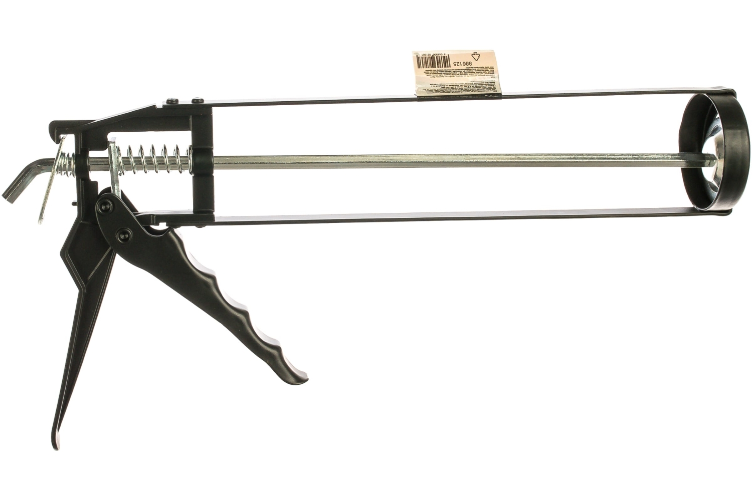 «Скелетный» пистолет для герметика Sparta 886125, усиленный с фиксатором, с 6-гранным штоком диаметром 7 мм, рассчитан на тубу объемом 310 мл и используется для работы с герметизирующими и клеящими составами. При помощи пистолета герметик наносится равномерно и без усилий. Пользоваться им просто — для подачи средства достаточно нажать на курок. Инструмент имеет простую конструкцию — установка тубы в корпус или ее замена занимает несколько секунд. Пистолет пригодится во время ремонтных, отделочных, сантехнических работ. Пистолет для герметика весит 292 г, что снижает нагрузку на руку и уменьшает усталость при длительной работе.У инструмента имеется фиксатор, блокирующий шток и предотвращающий его самопроизвольное движение назад.